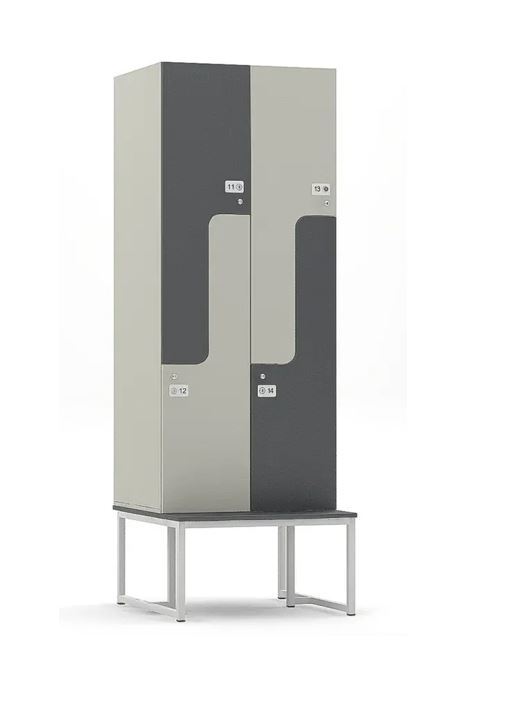 Данный шкаф из HPL, имеет 4 компактные ячейки, к каждой из которой идет в комплекте полка, штанга с крючком и замок. Размер шкафа: 824 х 500 х 1500мм (ширина/глубина высота). Размер скамьи: 824 х 860 х 450мм (ширина/глубина/высота), 300мм места для сидения. Цвет: любой из палитры. Материал: пластик HPL толщиной 8 мм.