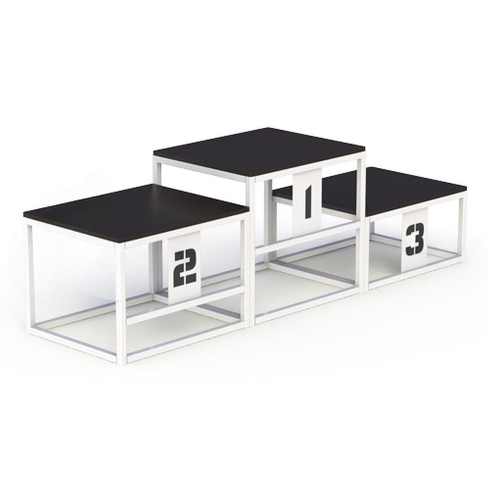 Размеры, Высота х Ширина х Глубина, мм.: - «1 место» - 600х500х550. - «2 место» - 600х500х430. - «3место» - 600х500х300. ДОПОЛНИТЕЛЬНЫЕ ХАРАКТЕРИСТИКИ - Пьедестал для награждения состоит из трёх тумб разной возвышенности с указателями для первого, второго и третьего места. - Материал изготовления каркаса прочный металлический профиль 25х25 мм, верхняя часть изготовлена из влагостойкой фанеры толщиной 15 мм. - Тумбы между собой могут скрепляться болтами. - Окрашена порошковой краской в цвет по согласованию (белый, серый или черный).