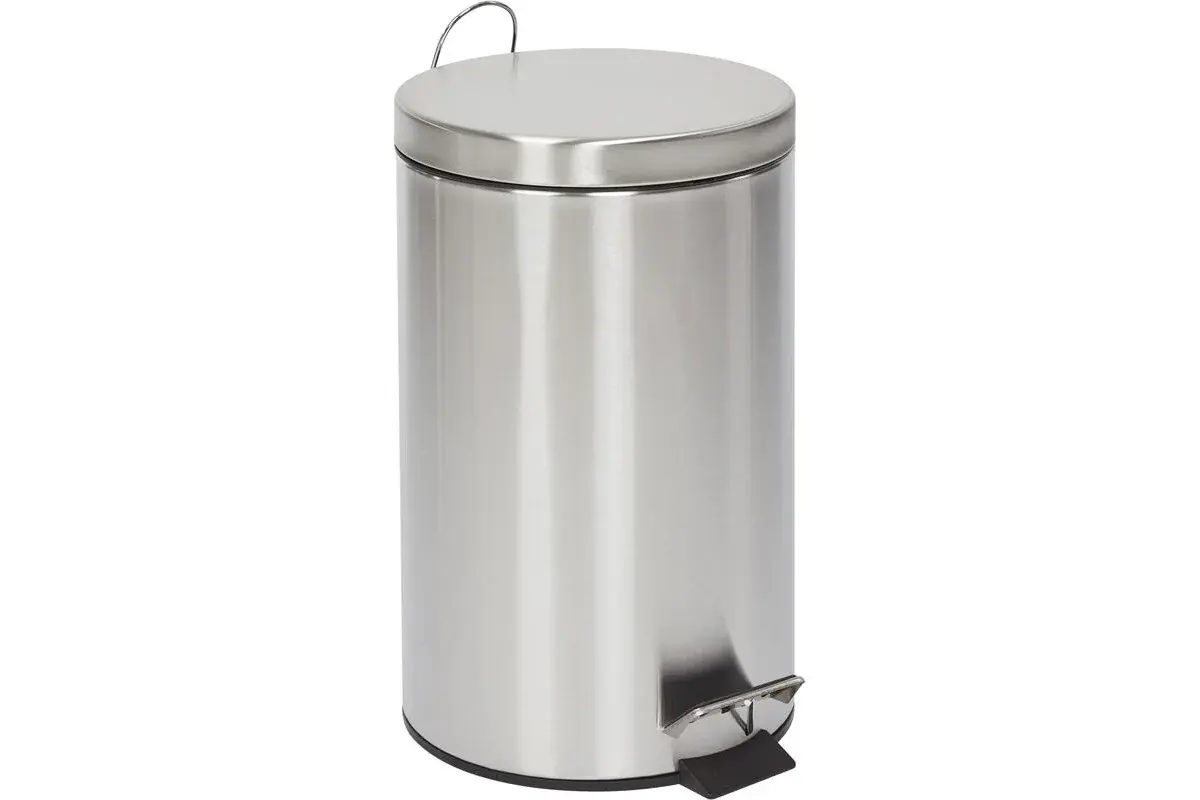 Ведро мусорное Luscan 12 л нержавеющая сталь с педалью с крышкой серебристое (39.5×25×25 см). Круглое ведро Luscan с педалью и доводчиком предназначено для сбора бытового мусора. Корпус выполнен из нержавеющей стали. Съемное внутреннее пластиковое ведро оснащено ручкой для переноски. Механизм доводчика обеспечивает тихое и плавное закрывание крышки. Наличие педального механизма позволяет не соприкасаться с конструкцией ведра руками. Герметичная крышка плотно прилегает к баку. Подходит для использования как в помещении, так и на улице. Комплектация: стальное ведро, пластиковое съемное ведро. Объем: 12 л. Размер контейнера: высота — 39.5 см, диаметр — 25 см. Цвет: серебристый. Вес: 1.75 кг.