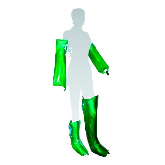 Комплект шин иммобилизационных пневматических НПФ- Медтехника КШд-5, детский, и Комплект шин иммобилизационных пневматических НПФ-Медтехника КШв-5, взрослый. Тип: многоразовый Применение: для верхних и нижних конечностей, Рентгенопрозрачность: да, Материал: поливинилхлорид, В каждом комплекте:по 4 шины, насос.