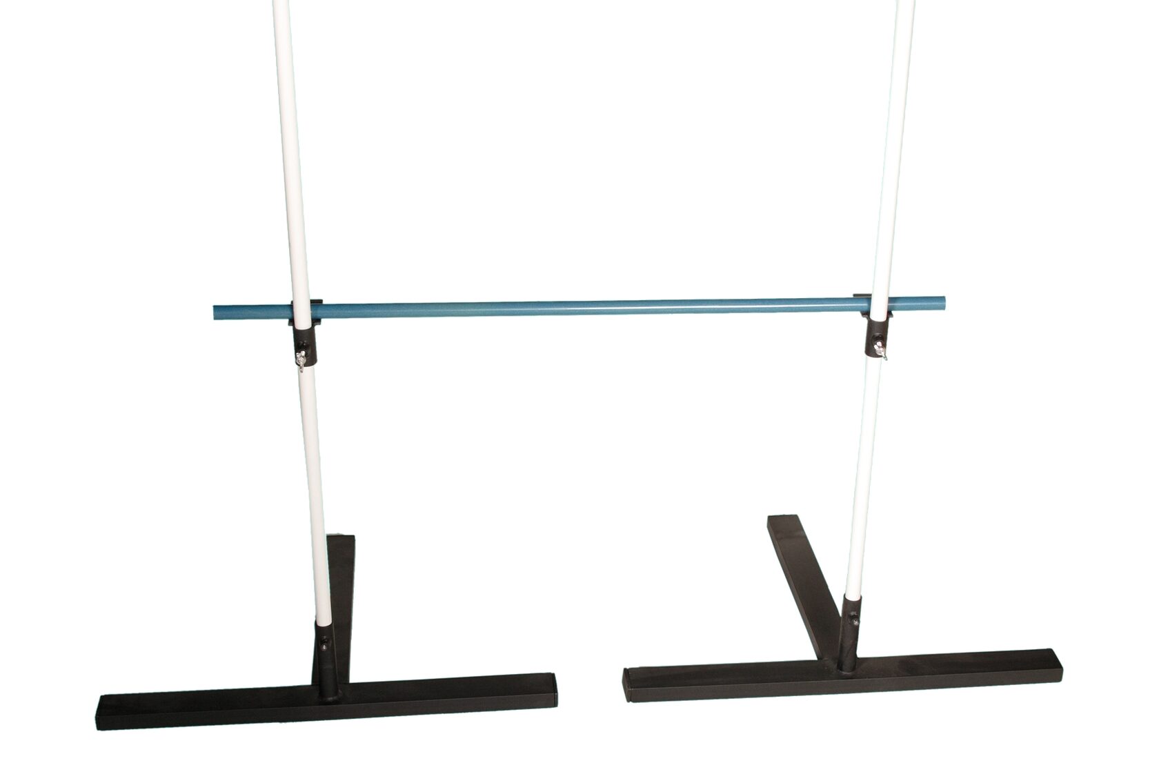 Стойки предназначены для поддержания планки при выполнении прыжков в высоту при проведении тренировок и соревнований на любительском уровне взрослых спортсменов и детей. Представляет собой сборную конструкцию, состоящую из двух Т-образных оснований (профиль 25х25мм) и двух выдвижных стоек (диаметр 20мм), соединенных крепежными винтами. На выдвижные стойки устанавленны подвижные кронштейны с полками для планки, фиксируемые с помощью винтов на необходимой высоте. Со шкалой для определения высоты планки. Поверхность стоек окрашена порошковым напылением. Максимальная высота планки - 2000мм