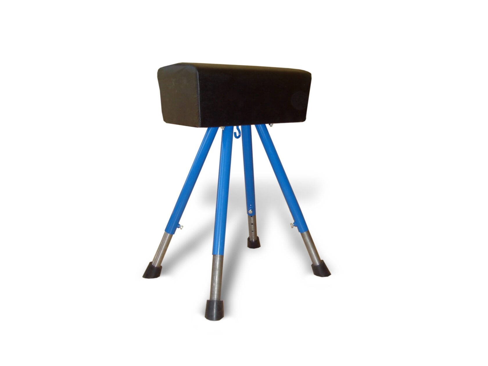 Конструкция козла представляет собой сборно-разборную конструкцию, состоящую из корпуса и опор. Корпус выполнен из дерева, обклеенный изолоном и покрыт чехлом из искусственной кожи. Размер корпуса: длина - 670мм, ширина - 350мм, высота - 280мм. Все края и углы корпуса имеют закругленную форму. На корпусе имеются резьбовые шпильки для закрепления опоры. Опора телескопическая и выполнена из стальных труб, окрашенных порошковой эмалью. На каждой телескопической стойке опоры установлен резиновый наконечник-копыто. Регулировки козла по высоте осуществляется выдвижением нижней трубы телескопической стойки опоры с шагом 55мм. Высота верхней поверхности корпуса от пола: 910 - 1350мм. Без крепления к полу.