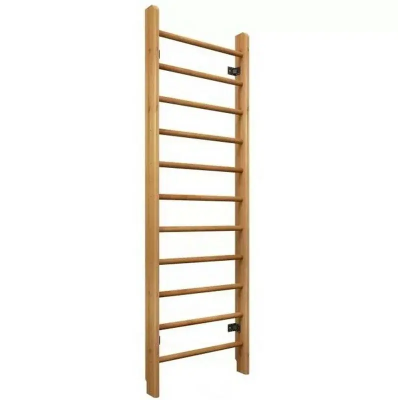 Шведская стенка «Стандарт» (одна секция). Высота — 2600 мм, ширина — 800 мм. Боковины (сечение 140×40 мм) выполнены из массива хвойных пород, отшлифованы с двух сторон и покрыты экологичным лаком в два слоя. Перекладины диаметром 40 мм — из твёрдой берёзы (овальные — под заказ), гладкие, почти без сучков, с закруглёнными краями для безопасности. Крепление к стене и полу — в комплекте. Нагрузка на перекладину — до 80 кг.